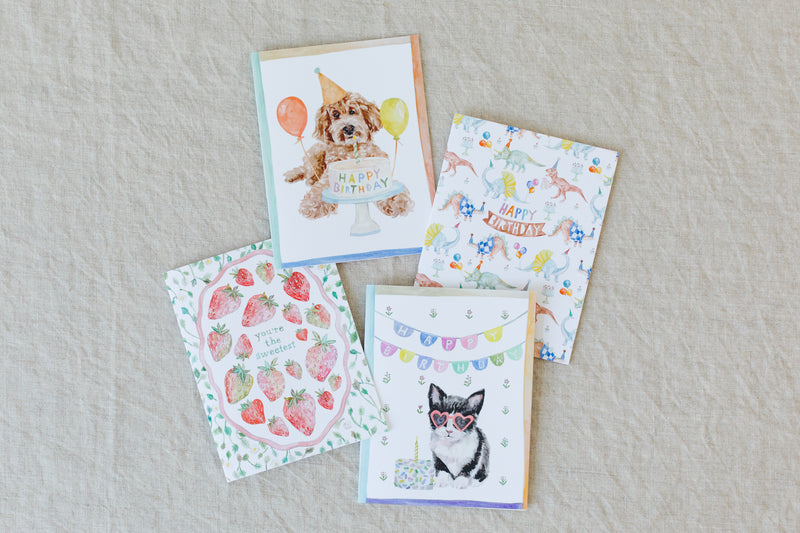 Here you'll find adorable, hand-painted gift wrap, cards, prints, and much more! We love making unique items that you'll love to share or keep (because, sometimes you gotta give yourself a little joy, too!).