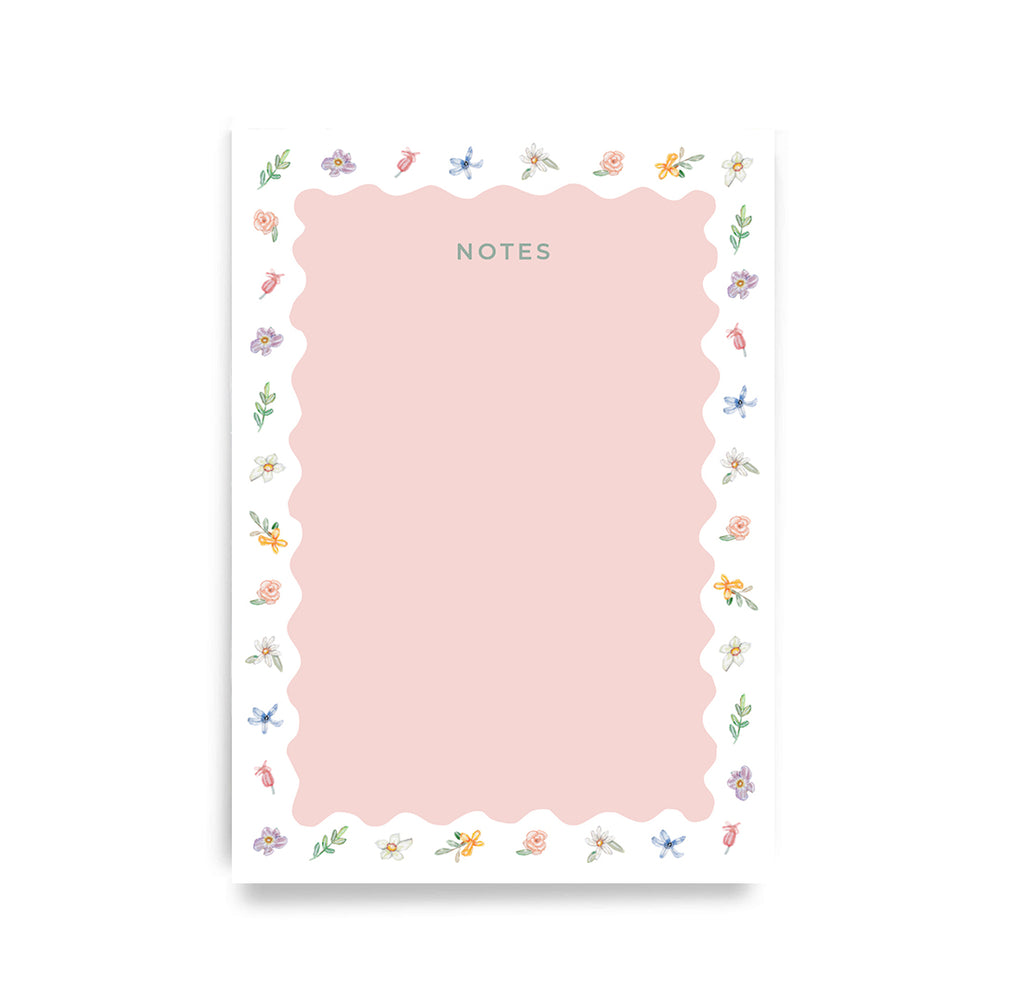 Our Botanic Notepad is a gentle nod to nature’s small details. Featuring hand-painted florals, scallop border and greenery surrounding a soft blush writing space, it’s perfect for daily notes, grocery lists, or moments of creative thinking. The airy design feels fresh and timeless, making it an easy gift and a beautiful addition to any workspace or home office.