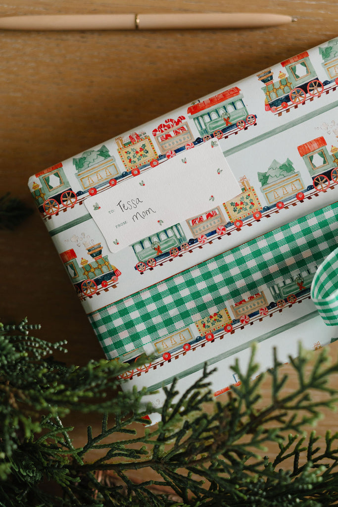 They match perfectly with our Christmas gift wrap for a cohesive, charming holiday look.