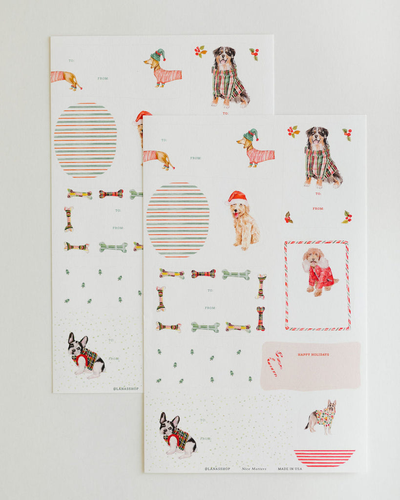 Add a cheerful dose of puppy love to your wrapping with our new hand-illustrated Holiday Dogs Gift Label Sheets. Just fill in the To/From and pop them on your packages for a delightful, holiday treat for all the animal lovers on your list. Each label brings a joyful, tail-wagging touch to your holiday gifting.