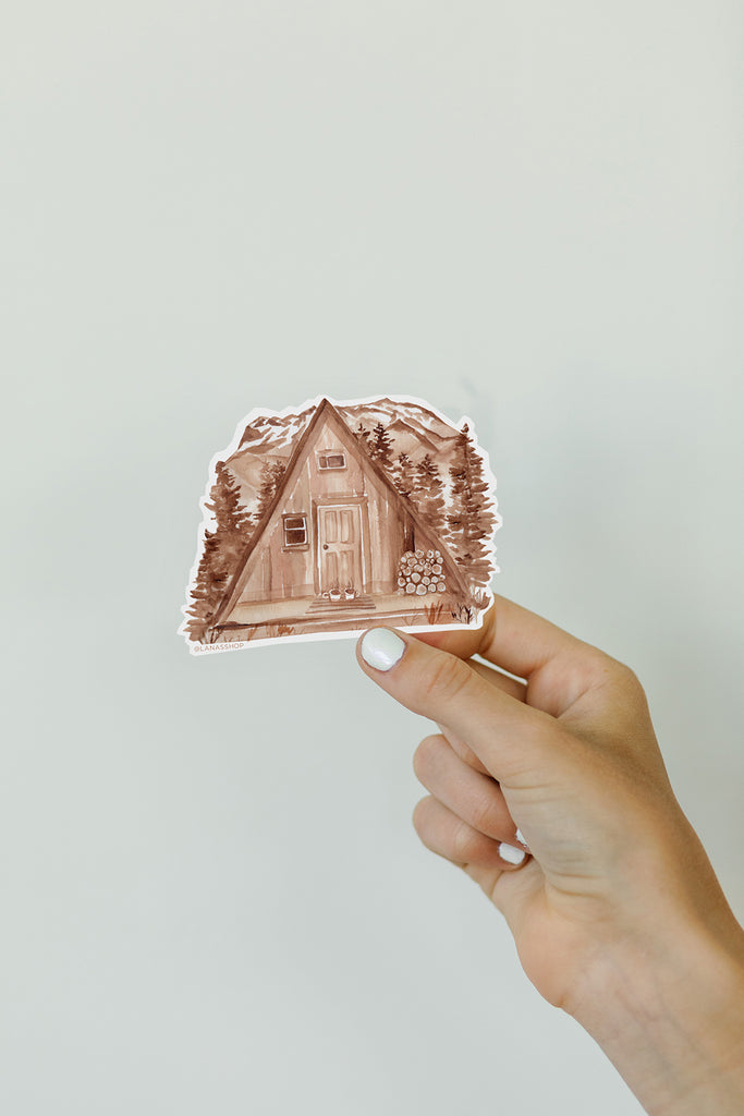 This hand-drawn A-frame cabin brings cozy mountain-retreat vibes wherever it goes. Perfect for cabin fans, hikers and anyone who loves simple, nature-inspired charm. Waterproof, durable and ready for all your adventures.